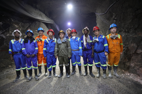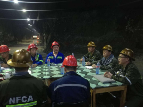 Under the company of management from JCHX-Zambia, the delegation first visited the working area on 482ml of west orebody where M2C drilling jumbo was under operation, after which a safety production meeting was held in 364# maintenance chamber. Having seen that UG operations were conducted safely and in an orderly fashion, particularly well-organized civilization works and efficient M2C operation, Mr. Yan was quite impressed and satisfied, he also highly recognized the achievements of production targets despite of all difficulties.