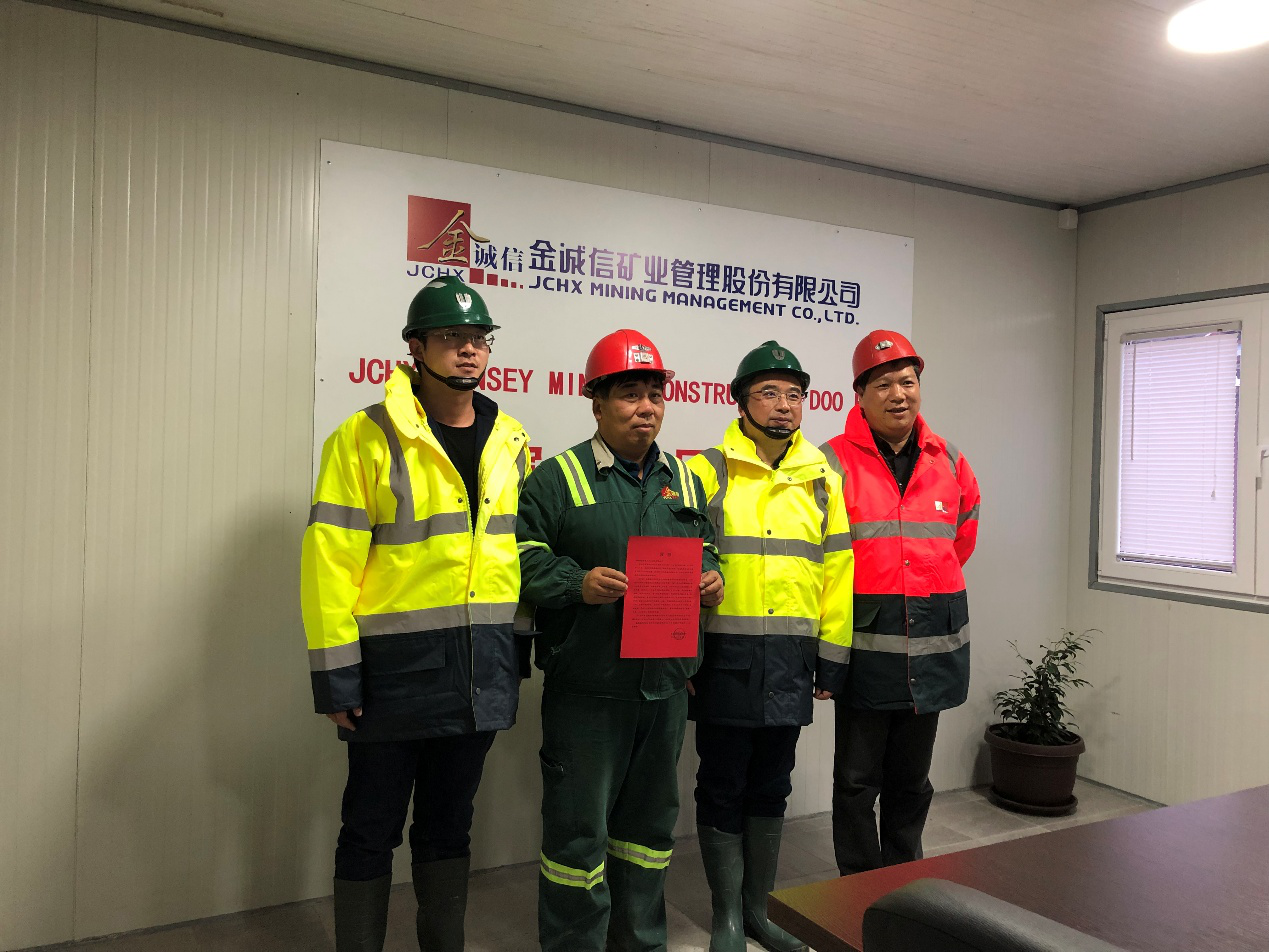 For these remarkable achievements leaders from Rakita Exploration Corp (Owner) delivered the congratulatory letter along with best regards to the team on site, when VP of JCHX also GM of JCHX Overseas Division Mr. Youcheng WANG happens to pay a visit at Timok. He thanked the Owner for the compliments, and expressed determination in continuing our efforts and creating better records in the future.