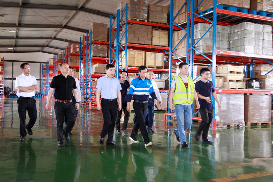 The delegation led by Mr. Dong first visited the new office building, where they heard about the process of construction, completion and relocation, and were well impressed by the high efficiency. Then they inspected the warehouse where Mr. Yao made a brief introduction on average volume of procurement, inventory level, varieties and consumption of goods and materials, the delegates highly appreciated the housekeeping and fine management at warehouse.