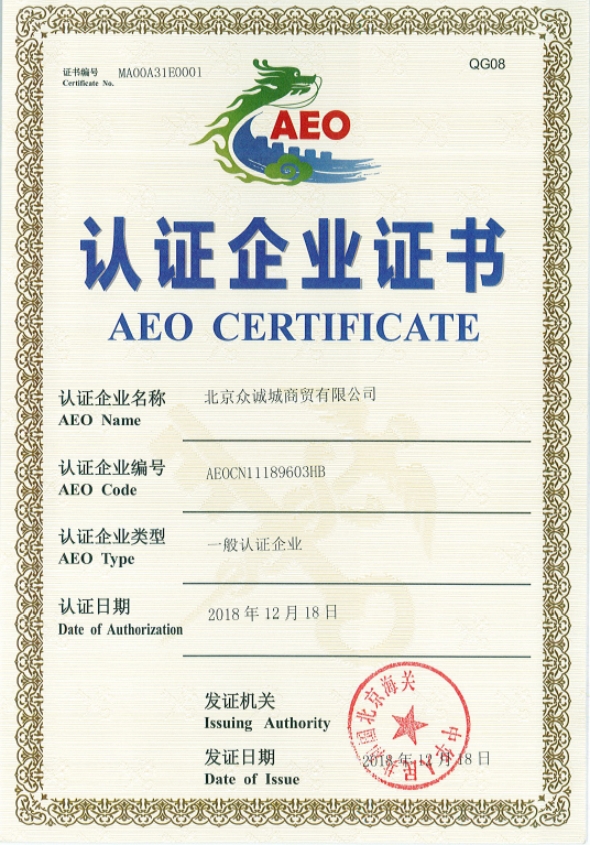 Beijing Menergy Trading Ltd was Qualified as Authorized Enterprise by Customs