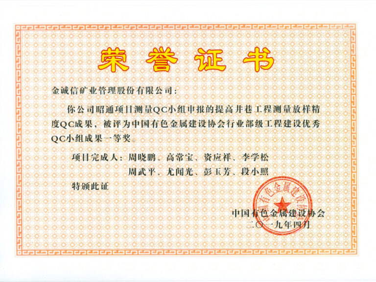 JCHX Won Several QC Awards for Non-ferrous Industry